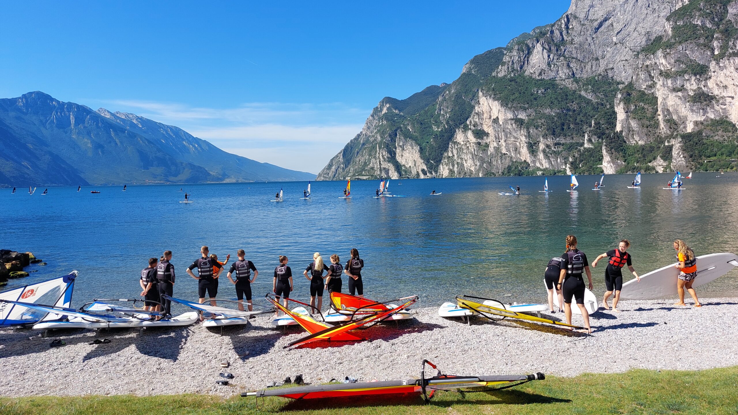 al lago le riunioni abbandonano le quattro mura: lavagne giù e vele su, spinte dall’Ora che soffia ogni pomeriggio. Guidati da facilitatori certificati ed istruttori sportivi professionali, ogni manovra sull’acqua si trasforma in una lezione pratica di collaborazione, leadership e resilienza.